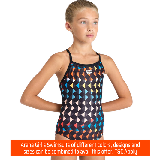 Arena Carnival Girl's Swimsuit | Lightdrop Back | Black- Black Multi