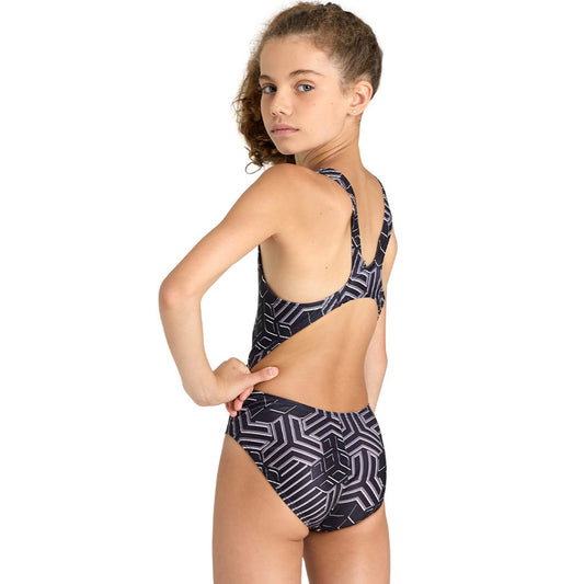 Arena Graphic Girl's Swimsuit | V Back | Black- Freak Rose
