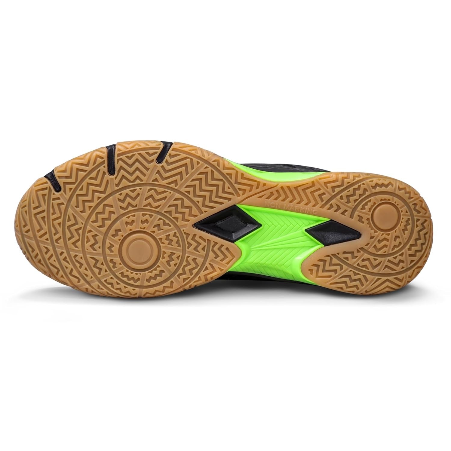 Non-marking multi-directional herringbone outsole ensures greater stability and agility on various surfaces.