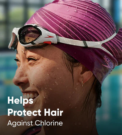 - Cap helps protect hair against chlorine