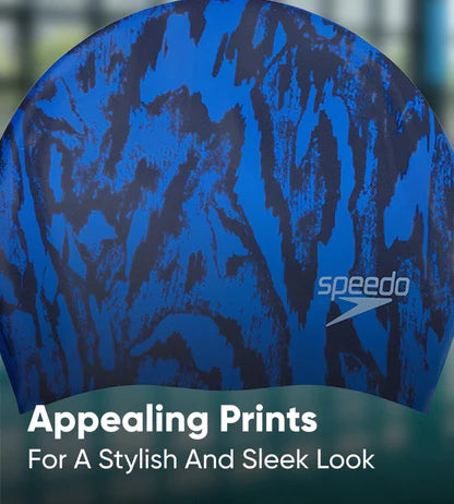 Speedo Women's Long Hair Printed Silicone Swim Caps - Violet/Ecstatic